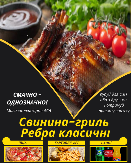 Соковита Свинина-гриль Ребра класичні, в поєднанні зі свіжими овочами, та соусом - це справжній смаколик, який викликає апетит під час їжі, а також естетичне і гастрономічне задоволення.
