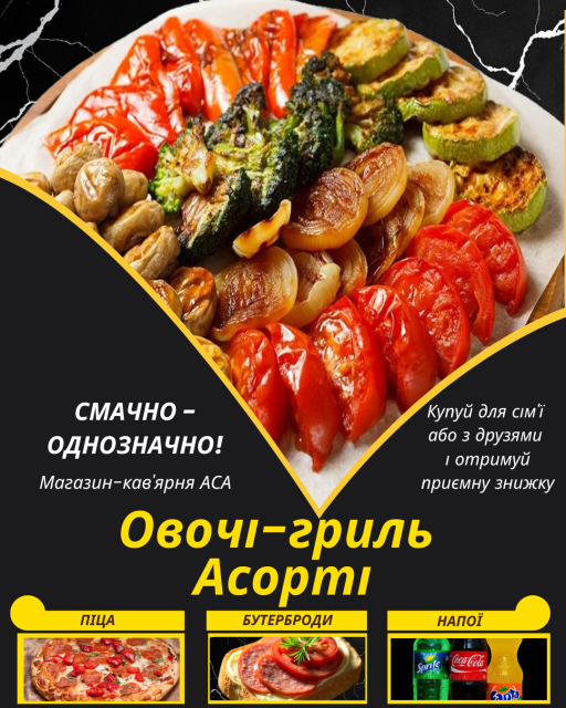 Соковиті овочі Асорті, засмажені на грилі до золотистого кольору з усіх боків, разом із смачнючим Сирним або іншим соусом на вибір – тут є все для естетичного та гастрономічного задоволення.