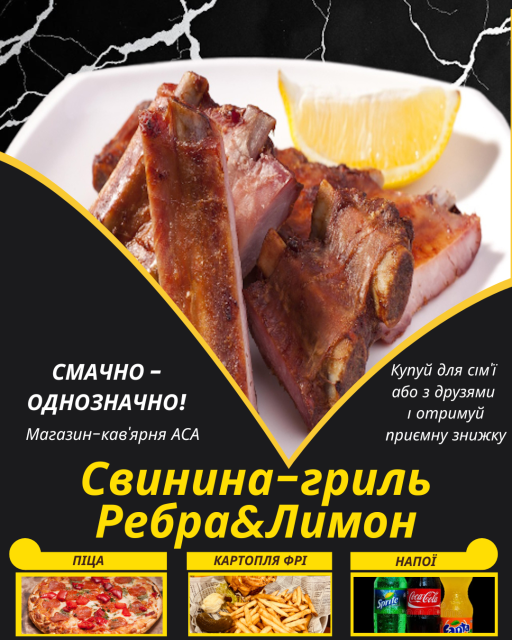 Соковита Свинина-гриль Ребра&Лимон, замаринована в спеціях і лимонному соці, приготована на грилі, в поєднанні з ніжним вершковим соусом - це справжній смаколик, який викликає апетит під час їжі, а також естетичне і гастрономічне задоволення.