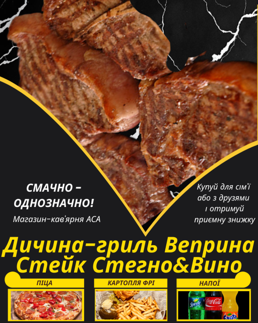 Соковита Дичина-гриль Веприна Стейк Стегно&Вино, замаринована в спеціях, приготована на грилі до бажаної просмажки, в поєднанні з кетчупом або соусом та свіжими овочами і зеленню - це справжній смаколик, який викликає апетит під час їжі, а також естетичне і гастрономічне задоволення.