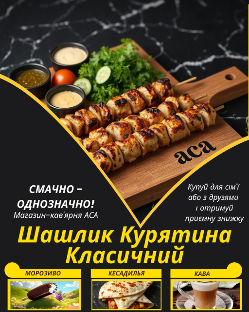 Соковитий Шашлик Курятина Класичний, замаринований в спеціях, та приготований з любов'ю до людей і до своєї справи – тут є все для естетичного та гастрономічного задоволення.