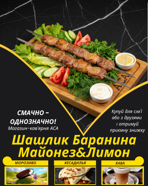 Соковитий Шашлик Баранина Майонез&Лимон, замаринований в спеціях, та приготований з любов'ю до людей і до своєї справи – тут є все для естетичного та гастрономічного задоволення.