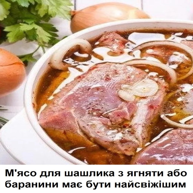 Інгредієнти: баранина, мед, сливовий соус, часник, орегано, сіль, чорний перець, огірок, помідор, зелень.