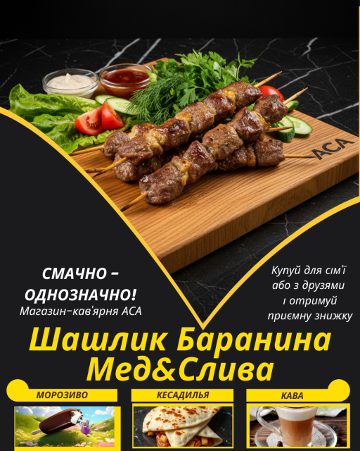 Соковитий Шашлик Баранина Мед&Слива, замаринований в спеціях, та приготований з любов'ю до людей і до своєї справи – тут є все для естетичного та гастрономічного задоволення.