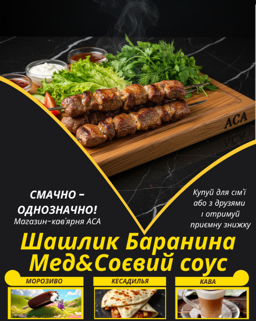 Соковитий Шашлик Баранина Мед&Соєвий соус, замаринований в спеціях, та приготований з любов'ю до людей і до своєї справи – тут є все для естетичного та гастрономічного задоволення.