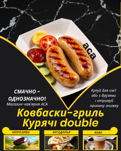 Дві соковиті ковбаски з ніжного курячого фаршу і спецій, засмажені на грилі до готовності, у поєднанні з свіжими овочами – найоптимальніший варіант для естетичного та гастрономічного задоволення в час, коли хочеться перекусити, зачувши їх запаморочливий аромат ще здалеку. Адже пахнуть вони саме так, пробуджуючи смакові рецептори кожного перехожого.